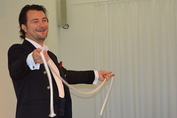 Mit der Aufforderung »Lassen Sie sich nun verzaubern!«, begrüßte er sein Publikum, das er dann mit »unfassbaren« Vorgängen verblüffte und mit seinen originellen Geschichten dazu bestens unterhielt. Auch wenn einige der Gäste dem Zauberer ganz nah kommen konnten und unmittelbar mitwirkten, all das, was passierte, war auch für sie »nicht zu fassen«. Die Faszination blieb erhalten, die Begeisterung jedes Einzelnen, quer durch alle Altersklassen, zeigte sich nicht nur im großen Schlussapplaus, sondern auch in all den kleinen persönlichen Gesten, die dem Zauberkünstler noch nach der Show entgegengebracht wurden.